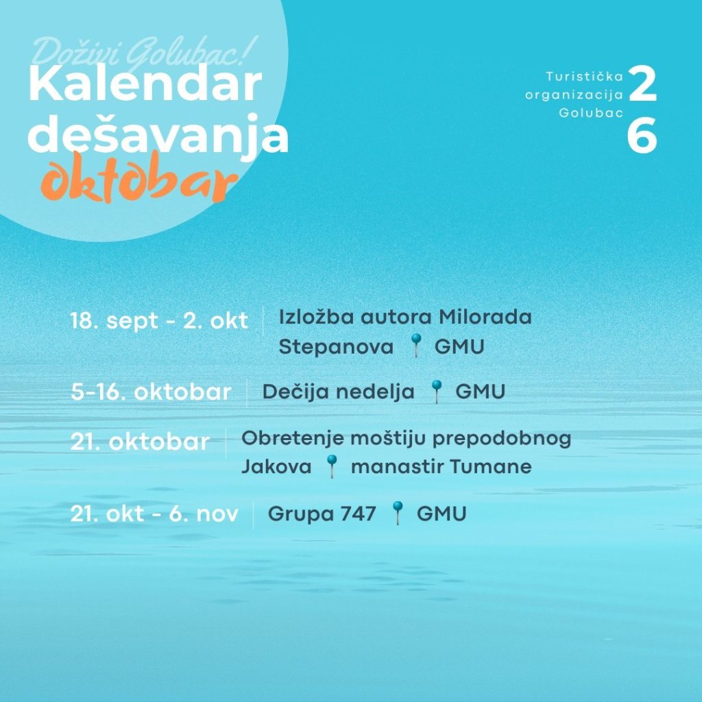 Кроз пажљиво осмишљен и динамичан календар дешавања за сезону 2026 у околини Голупца, од априла па све до децембра, очекује вас богат, разноврстан и садржајан програм који ће задовољити укусе свих генерација. Током читаве сезоне смењиваће се бројне манифестације, културни, музички и забавни догађаји, гастрономски фестивали, као и активности на отвореном које у потпуности оживљавају дух овог краја.